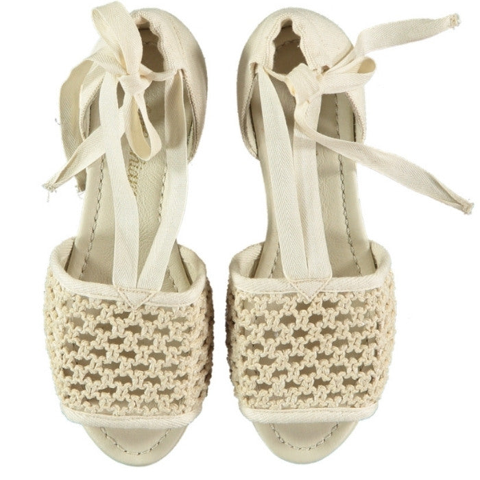 The vamp made of raffia leather lined with leather and the heel made of organic...
