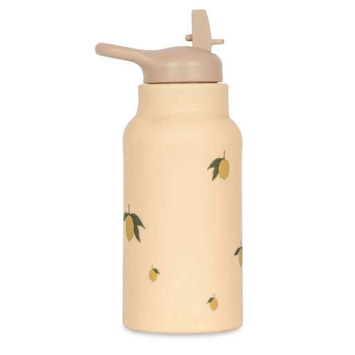 Drinking bottle made in silicone designed with a spill proof sippy cap. The cap is...