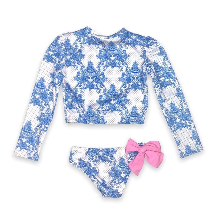 An adorable two piece rashguard long sleeves with big bow on bottom side Sun Protection...