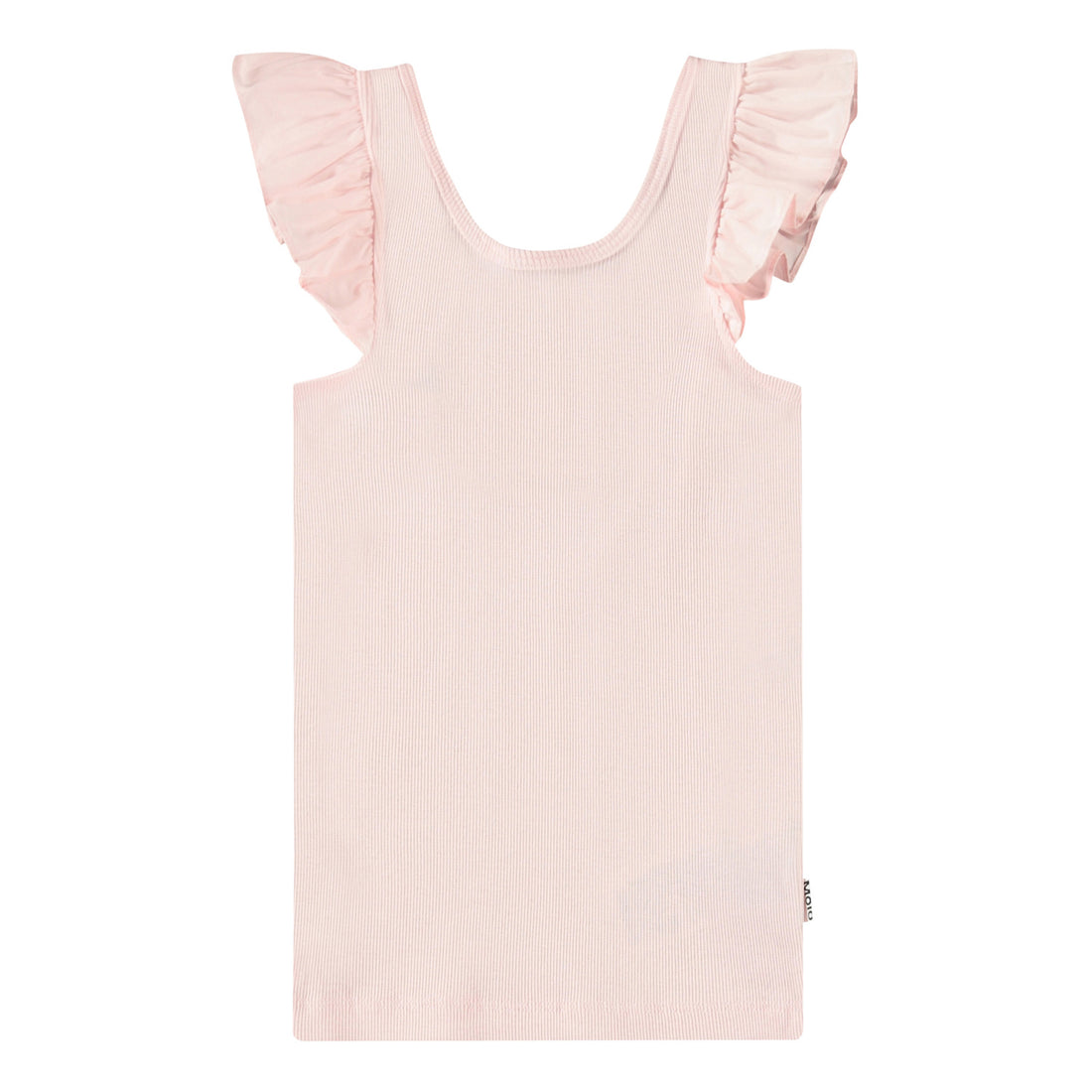 Pink tank top in soft organic cotton. The top has a close-fitting design, poplin ruffles...