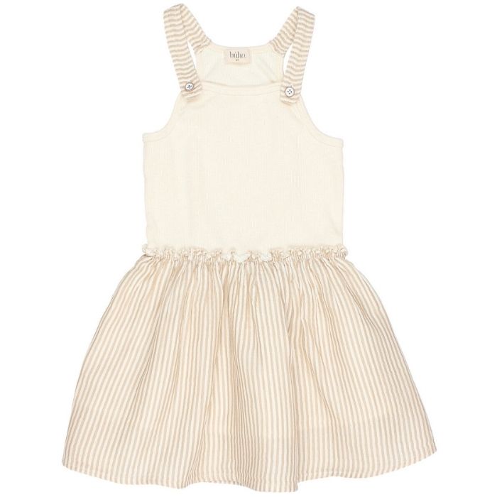 Striped combination dress. Straps with buttons on the front. Gathered at the waist. Fabric 1:...