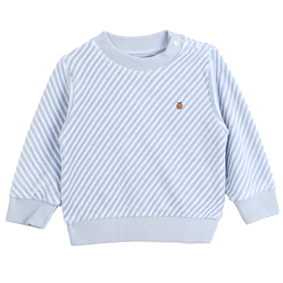 Sweatshirt in ecru organic terry cloth with blue stripes. We like the oblique stripes, the...