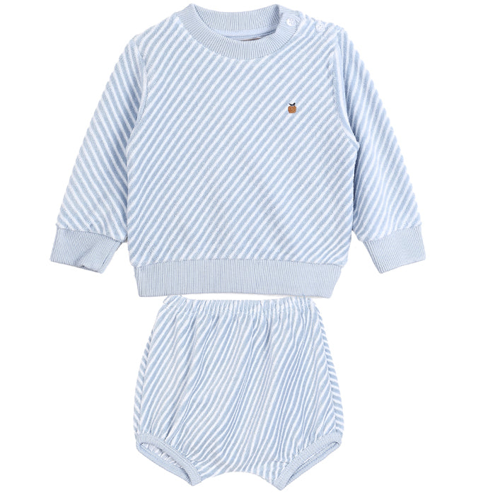 Sweatshirt in ecru organic terry cloth with blue stripes. We like the oblique stripes, the...