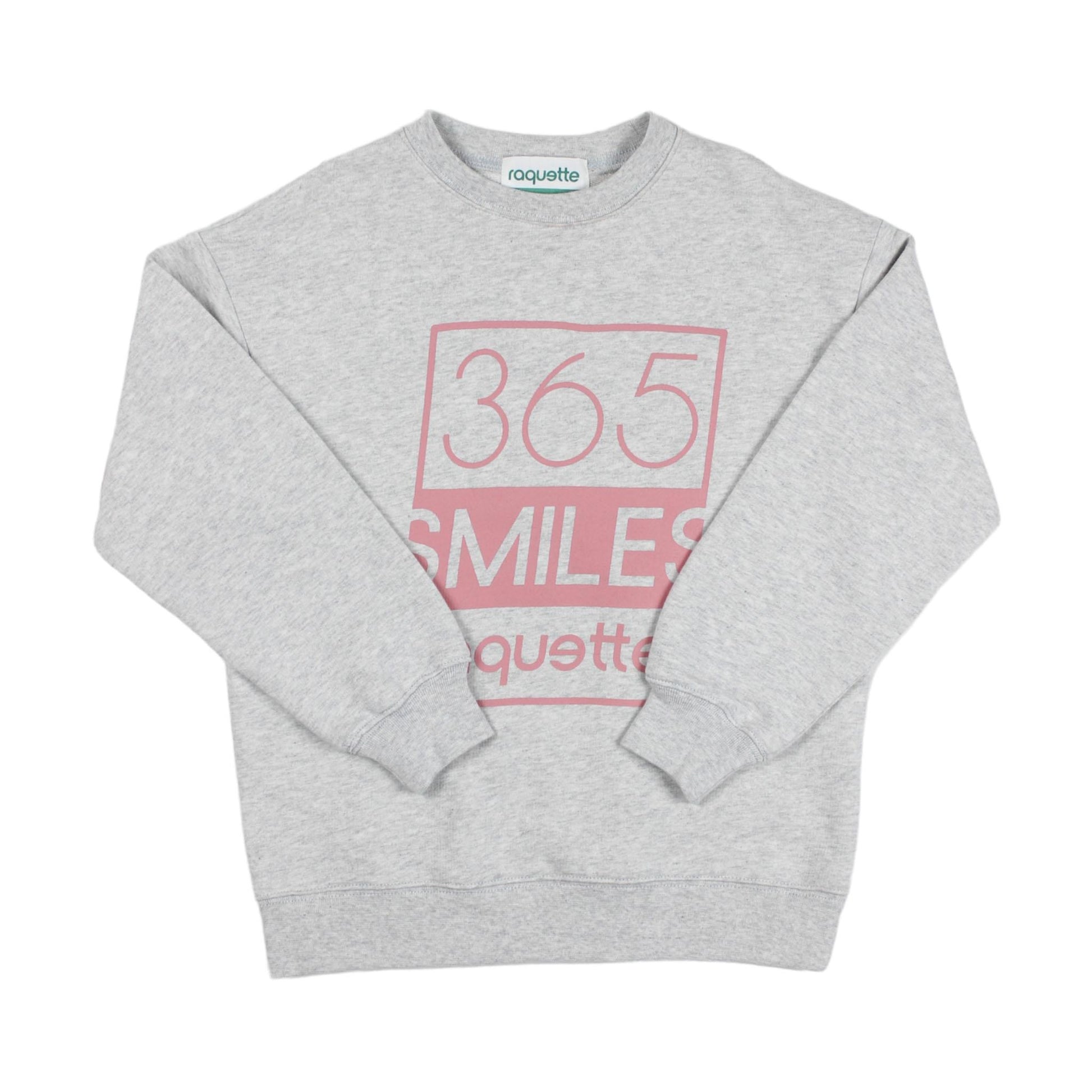 our iconic boxy fit sweater in eco cotton french terry featuring 365 smiles logo graphic, rib collar, rib cuffs and rib hem