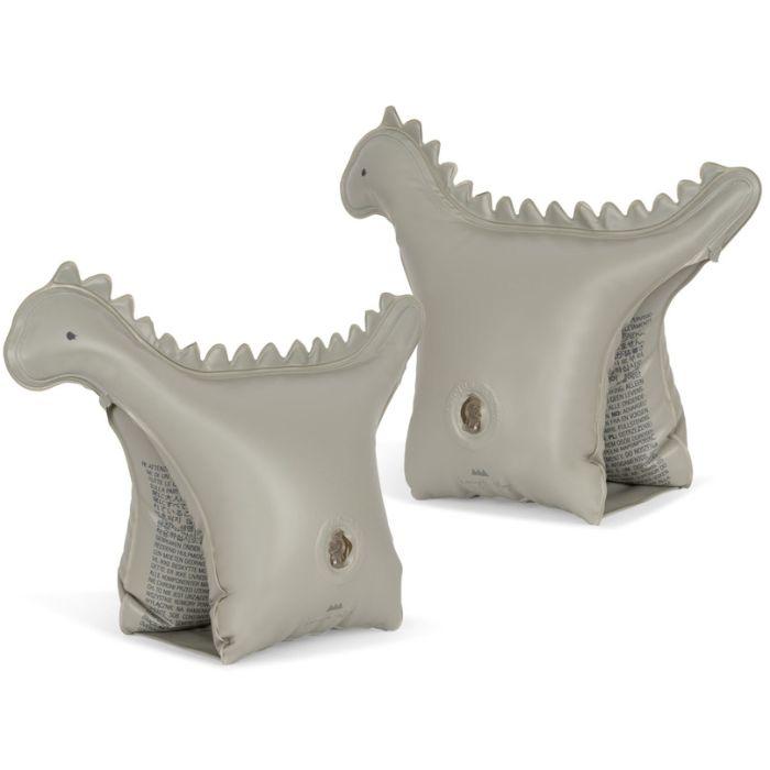 Inflatable swim wings made from durable, PVC. Designed with dinosaur head and spikes.