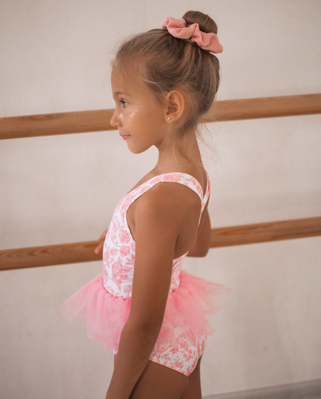 Isella onepiece swimsuit in antique rose pink with pink tulle tutu